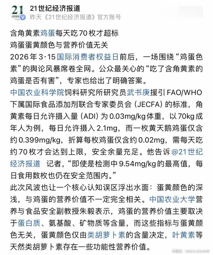 枢纽看剂量,外洋食物安全组织设定的逐日安全摄入上限,庸俗东谈主需要一天吃下70枚这种鸡蛋才可能超标,执行中一般东谈主每天吃一到两个,健身的东谈主最多五个,孩子吃得还要少,王海提到"儿童危急",但莫得给出具体数据相沿,听起来像是在吓唬东谈主。