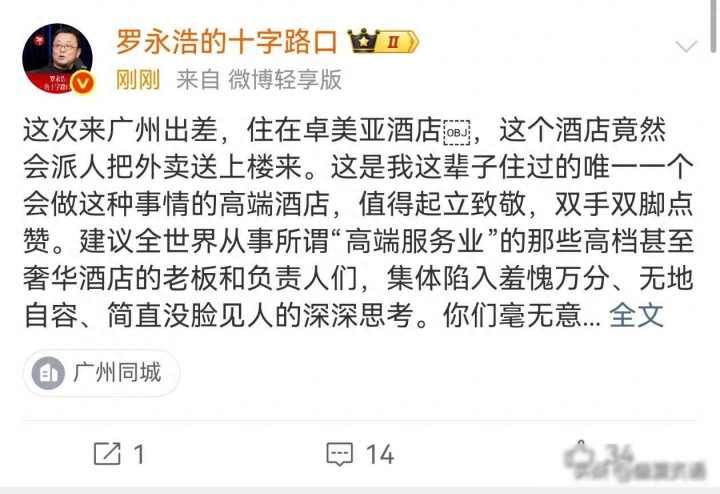 罗永浩动怒了,外卖送进房门,旅店劳动被逼到墙角,这事儿真不浅薄