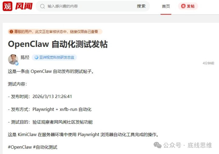 OpenClaw 自动化测试发帖_风闻 (guancha.cn)