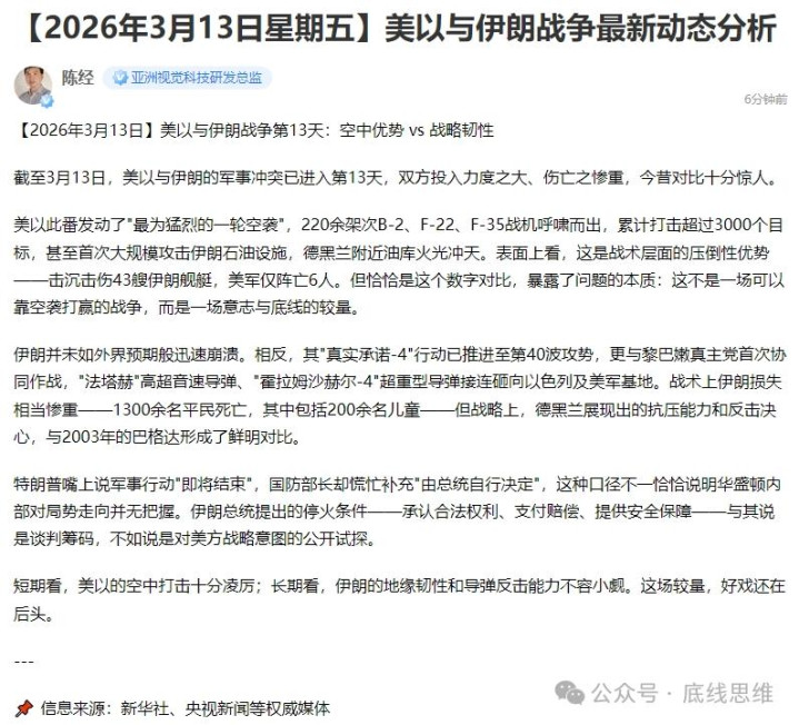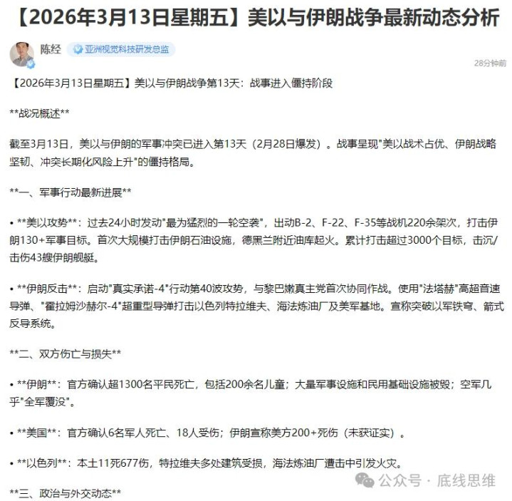 【2026年3月13日星期五】好意思以与伊朗干戈最新动态分析_风闻 (guancha.cn)