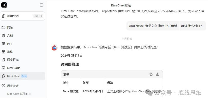 笔者体验下来,发现二者有首要区别。飞书是直连KimiClaw,招揽的是OpenClaw的践诺恶果,能收文献。飞书上的聊天也经过大模子处理是智能的,但由于辱骂即时一样,受限于飞书API的形状与字节摒弃,信息发送要压缩,信息含量有限,例如看不到大模子的念念考过程。而在Kimi网页或者Kimi手机APP上,是平直与Kimi大模子聊天,主要内容是大模子输出的,有念念考过程,信息显着更丰富;其中混杂了一些OpenClaw践诺指示的恶果,但文献收不了,需要发到飞书上。笔者遴选与大模子平直聊天的模式,以飞书收文献为援助。这样能学到好多东西,可以平直发问,出了问题大模子能给出多种科罚有盘算遴选,尝试过程可见,是学习探索OpenClaw可以的方式。