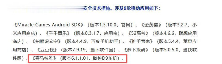 据国度汇集安全通报中心前年5月发布的宣布,来自腾势D9车机的《喜马拉雅》(版块6.1.1.01)存在阴私战略未一一列出App(包括奉求的第三方或镶嵌的第三方代码、插件)汇集使用个东谈主信息的宗旨、花式、范围等;未向用户提供撤退本旨汇集个东谈主信息的路子、花式;未提供方便的撤退本旨花式。以及未接纳相应的加密、去标志化等安全期间方法。
