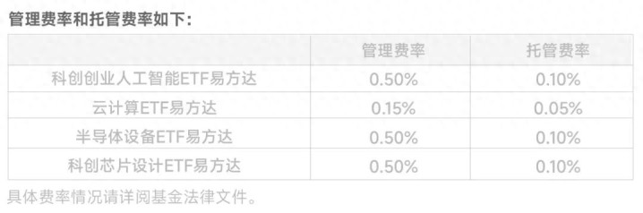 科创创业东谈主工智能ETF易方达、云筹算ETF易方达、半导体开荒ETF易方达、科创芯片想象ETF易方达:投资东谈主有申购或赎回时,申购赎回代理券商可按照不越过0.5%的圭臬向投资东谈主收取佣金其中包含证券来回所、登记结算机构等收取的关系用度。场内来回用度以证券公司试验收取为准。