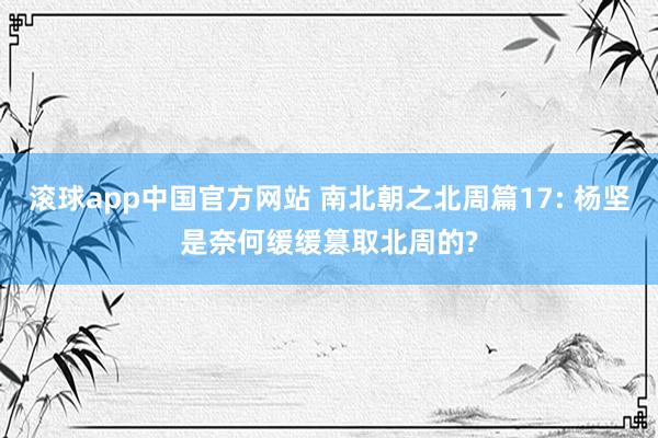 滚球app中国官方网站 南北朝之北周篇17: 杨坚是奈何缓缓篡取北周的?