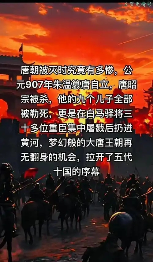 到了洛阳,朱温派东说念主杀了唐昭宗。皇帝睡梦中被刺,惊醒后拚命潜逃,最终如故被杀。朱温假装很追悼,跑去洛阳“吊问”,一脸“我没猜度会这么”的色彩,演技满分。