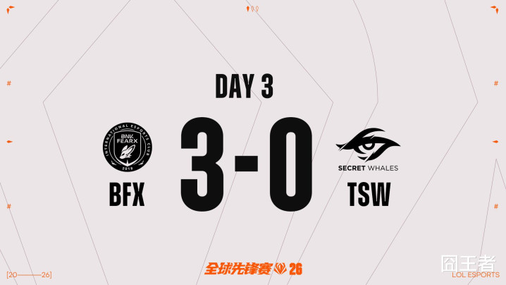 BFX零封TSW!TSW成为本届前卫赛首支淘汰军队