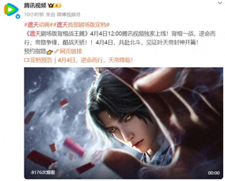 辰东原著演义《遮天》从2010年10月首发,2013年5月罢了,636万字的长篇奇幻演义,生息出了游戏,动漫、电视剧、短剧等作品。腾讯视频官微宣告,遮天戏院版《背棺战王腾》定档4月4日独家上线。