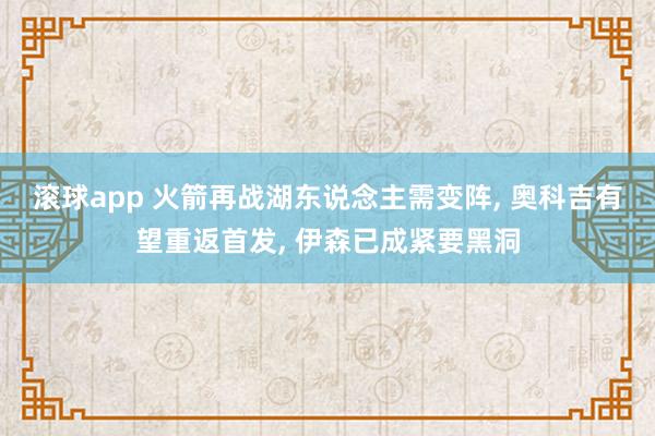 滚球app 火箭再战湖东说念主需变阵, 奥科吉有望重返首发, 伊森已成紧要黑洞