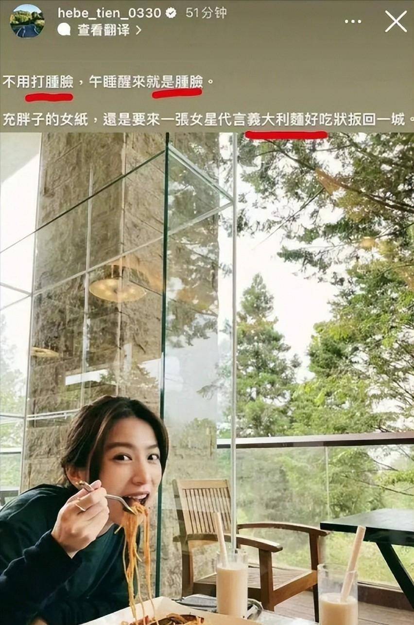 2022年8月3日凌晨,39岁的田馥甄在外交平台晒出一组活命照,其中一张素颜吃意大利面的相片激励山地风云。相片里她穿戴失业装,嘴角沾着酱汁,对着镜头比耶,配文却写着“不必打肿脸,午睡醒来即是肿脸。充胖子的女纸,照旧要来一张女星代言意大利面可口状扳回一城”。