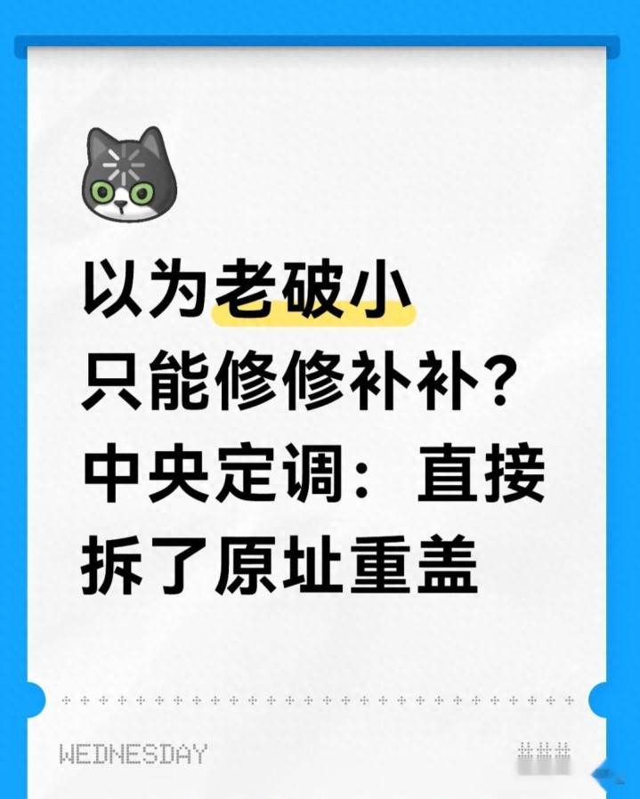 1. 不是所有这个词老少区齐能拆:仅限危房与不具备修缮价值的老旧住房,世俗老旧小区仍以微阅兵为主,毫不搞“一刀切”;