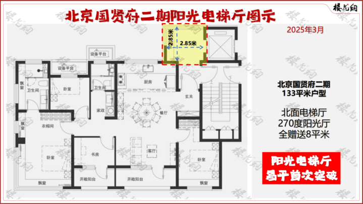 2、2025年3月份,昌平北京国贤府二期亮相,133平米和166平米户型,尽然出现了270度的阳光电梯厅,北京创始。
