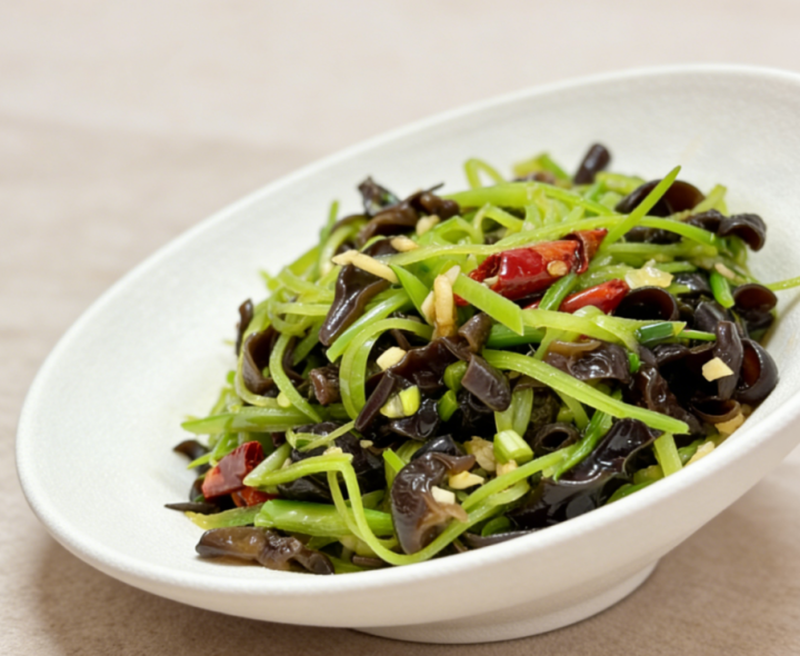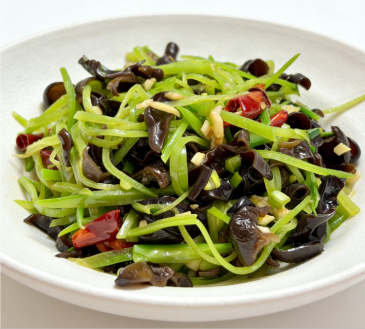 第二步:焯水“三部曲”(决定成败!)锅里烧水,水开后加一勺盐和几滴食用油(这是让荷兰豆保持翠绿不发黄的诀要)。先下木耳:煮1分钟傍边,捞出过凉水,沥干。