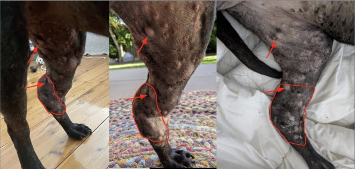 给与疫苗休养后,毛孩子的病情在几周内就有了昭彰收复,狗狗腿上的肿瘤减弱了50%。