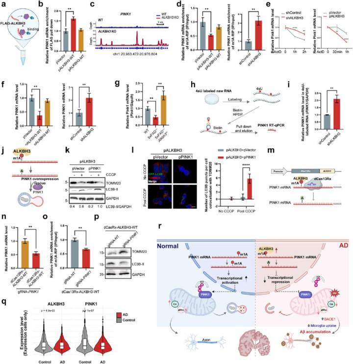 图三 ALKBH3通过依赖m1A的mRNA修饰调控 PINK1