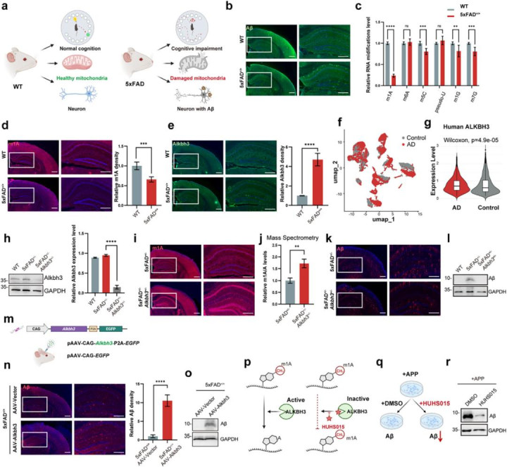 图一 Alkbh3转念5xFAD小鼠海马中的m1A和Aβ
