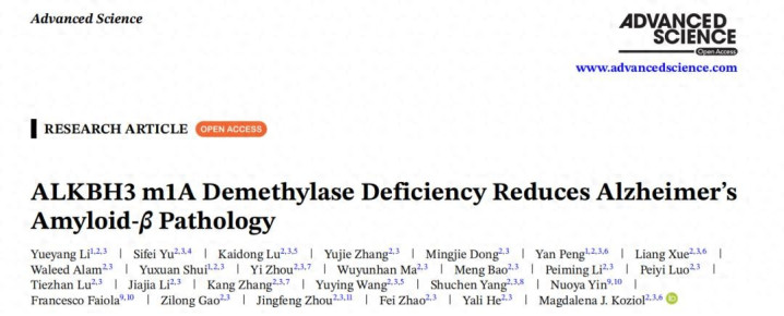 基于此,2026年3月11日,北京脑科学与类脑贪图所Magdalena J. Koziol贪图团队在《Advanced Science》杂志发表了“ALKBH3 m1A Demethylase Deficiency Reduces Alzheimer’s Amyloid-β Pathology”揭示了ALKBH3 m1A去甲基化酶波折可浪漫阿尔茨海默病的淀粉样卵白-β病理篡改。