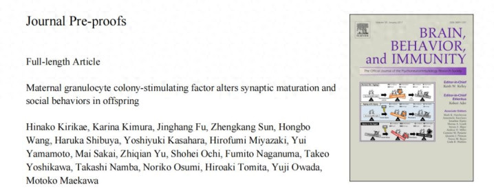 2026年3月12日,东北大学Motoko Maekawa沟通团队在驰名期刊《Brain, Behavior, and Immunity》发表题为:“Maternal granulocyte colony-stimulating factor alters synaptic maturation and social behaviors in offspring”的沟通职责。