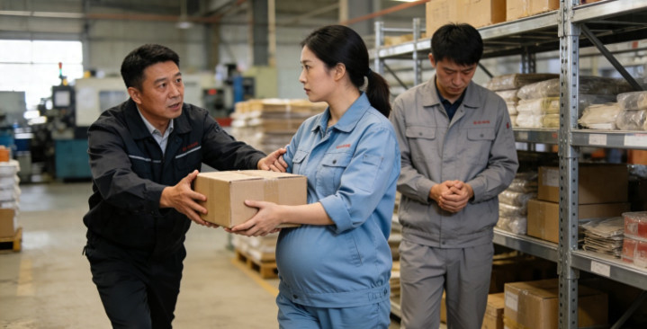 安徽宣城一家工场里,雇主巡视时看到怀胎女工正弯腰搬重物,坐窝向前圮绝,还严厉品评了认真东说念主。之后他不仅给女工调岗不扣工资,更出台轨制,特意保护孕期女职工的正当权利。