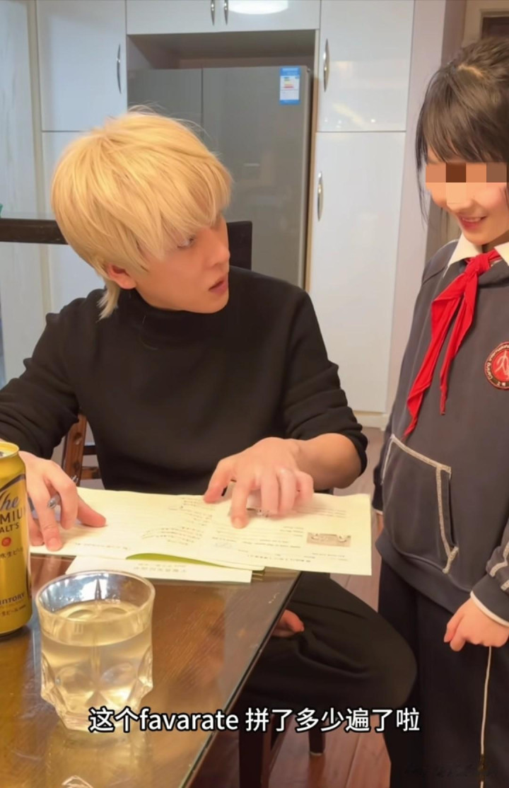 上海有一双父母最近挺受蔼然,他们拍了个结合孩子学英语的视频发到网上,许多东说念主看了都说这起原不太获胜,那位爸爸把头发染成黄色,穿得也像年青东说念主相似,姆妈手里老是拿着羽觞,看起来像是有点喝多了,全球一开动以为这两个东说念主可能教不好孩子。