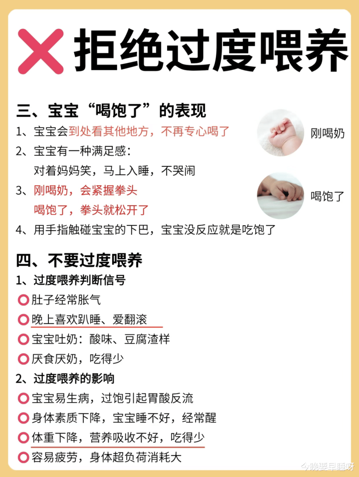 我们家长在喂养的时刻,很容易堕入一个误区,即是以为宝宝吃得越多越好,长得越胖越好。其实,过度喂养对宝宝的伤害是很大的。要是宝宝肚子通常胀气,晚上心爱趴着睡、爱翻腾,或者吐奶的滋味是酸的、像豆腐渣雷同,以致出现厌食厌奶、吃得越来越少的情况,那很可能即是喂太多了。遥远过度喂养,不仅会让宝宝体格超负荷,容易生病,还会影响寝息质料,导致体重不增反降,养分接管也不好。是以,我们要拒却过度喂养,学会不雅察宝宝的体格响应。