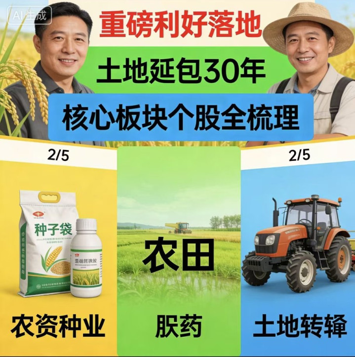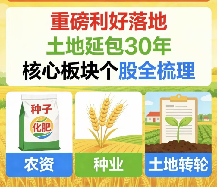 重磅政策突袭,第二轮地盘承包到期后再延迟30年试点全面驱动,这一重磅利好班师引爆农业板块行情,为A股指明中枢紧迫标的,本文班师拆解受益板块与中枢个股,精确把合手行情契机。