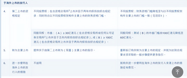 在便利国外刊行东说念主来港上市方面,商榷文献优化了第二上市阅历及转主要上市功令,大幅镌汰中概股等国外企业讲究港股的门槛。