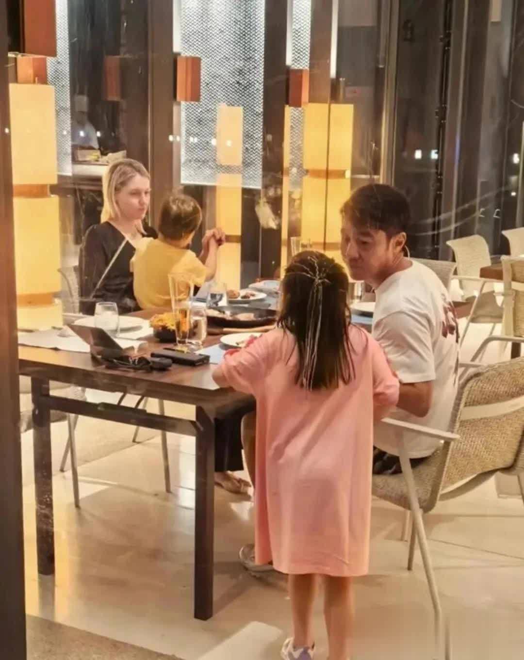 撒贝宁一家在栈房用餐时,他更换了一件条纹T恤,扫数东谈主看上昨年青了好几岁。