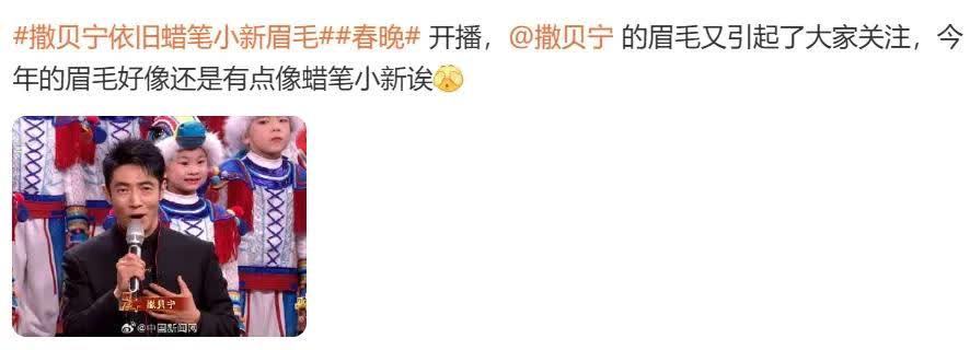 前些年,撒贝宁主合手春晚时,戴生肖头套激励了极高的接头度。连年来,他的眉毛也成为一大亮点,还登上了热搜榜。有网友发文称:“本年的眉毛或者照旧有点像蜡笔小新诶!”