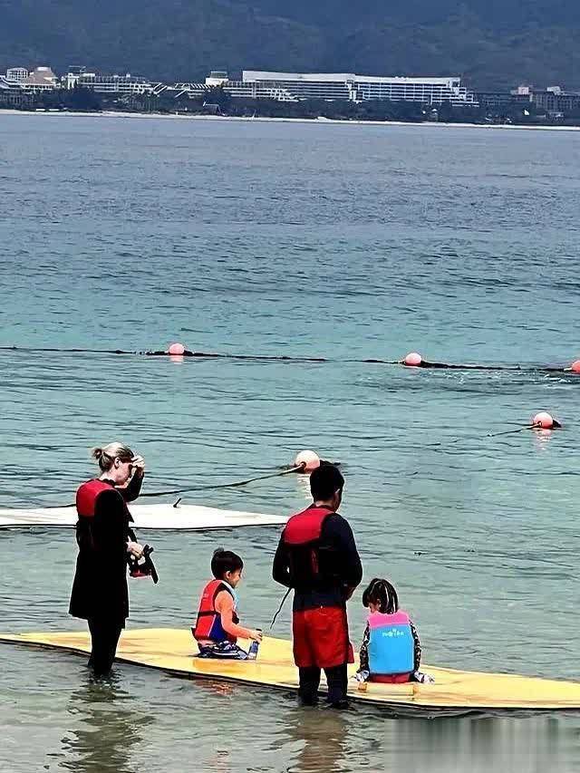 近日,有网友在三亚相遇撒贝宁与外籍配头李白,他们正带着一双龙凤胎享受度假时光。