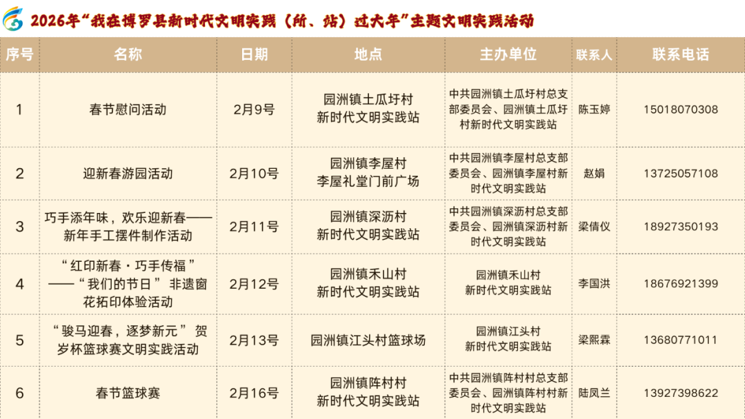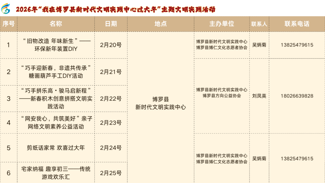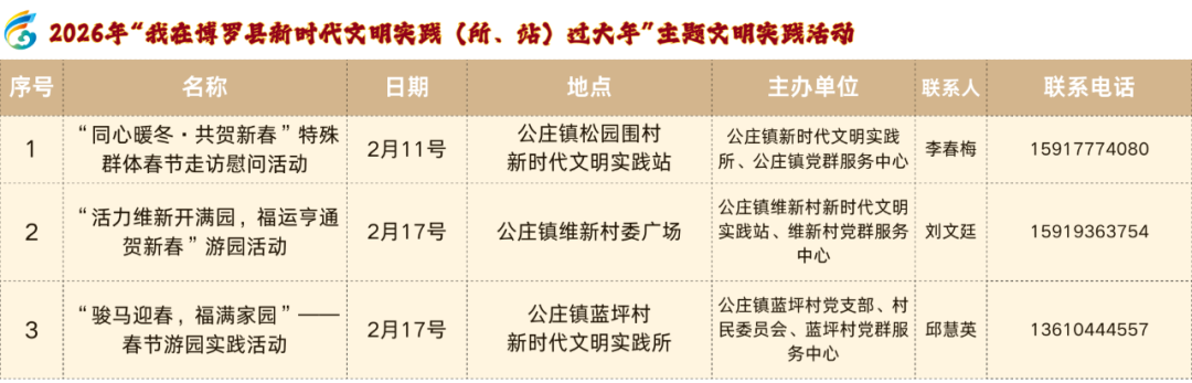 步履时期:2026年2月10日—3月6日步履方位:博罗县文化馆