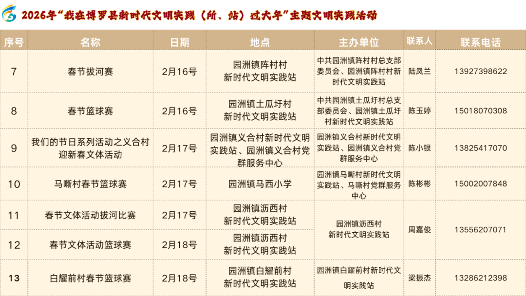 步履时期:2026年1月24日—2月17日步履方位:柏塘镇文化广场