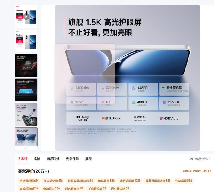 它就是红米Redmi Turbo 4手机--一款2025岁首刚发布的千元性价比神机!它当今在X电商平台(单个平台)已收货20万+真正用户评价,好评率98%,这个数据依然很可以了!聚拢到全平台、全渠谈,口碑畸形稳了!我们就按全球最真正的使用响应,好好扒一扒这台千元机到底有哪些亮点值得全球护理的?它的千元订价到底是物超所值照旧货分裂板呢?