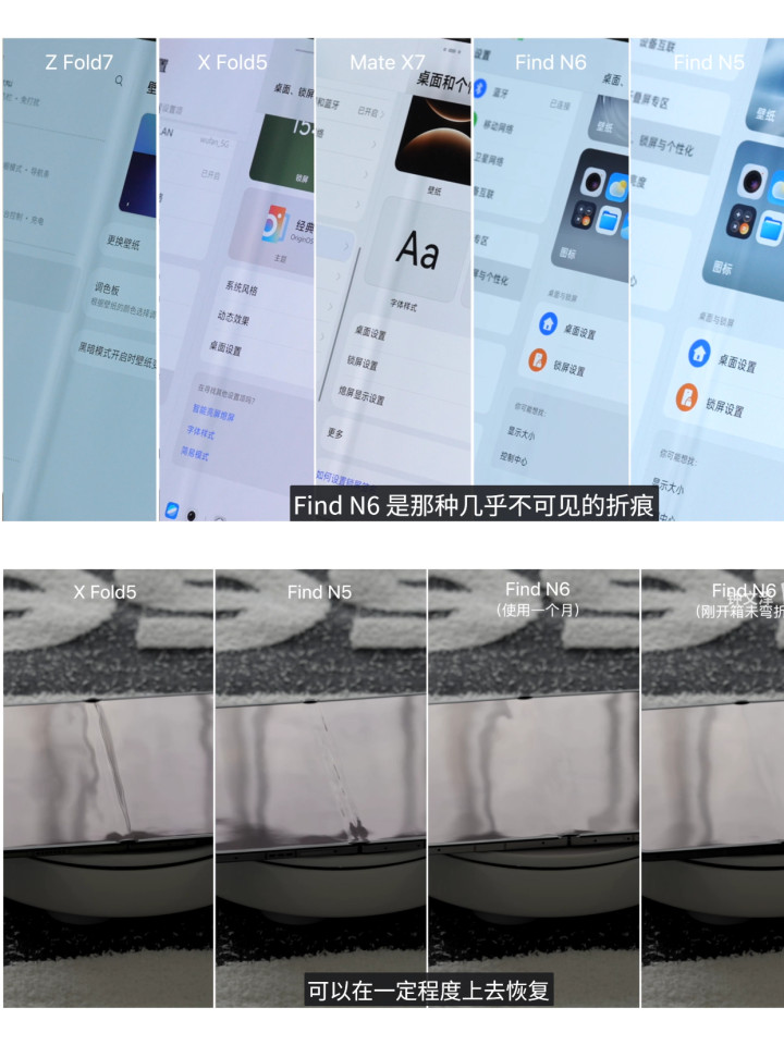 当先折痕适度这块,公共望望服从就知说念了,OPPO衰竭同级家具很多,使用一个月的Find N6,折痕仍是基本看不见,不错作念到确切无感