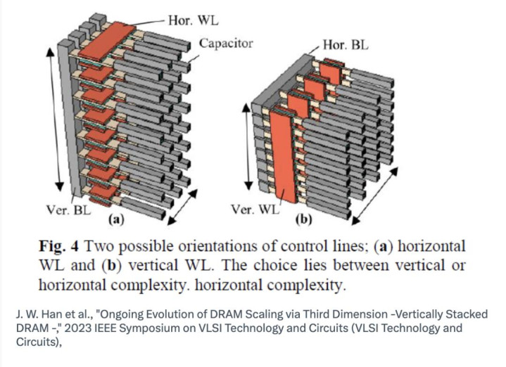 最近对多样陈设范例(举例垂直位线(VBL)和水平位线(HBL))的比较筹商标明,3D 1T1C DRAM的实质竞争力取决于存储电容的最小所需容量、位线寄生电容、位线之间的耦合噪声以及堆叠数目。迥殊是,证据IEEE TED的一项比较筹商,即使在基于VBL的3D DRAM中,要在保持弥散信号裕度的同期终了超越12nm级2D DRAM的密度,也可能需要圣洁50个堆叠;这标明,固然 3D 堆叠保持电容器代表了最连气儿的发展旅途,但这毫不是一个工艺难度低的搞定决策。
