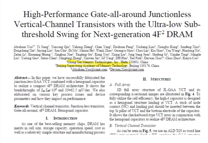 扼制浮体效应(FBE)和走电流(4F2架构的永久贫苦)的结构转换也在加速鼓舞。通过聚会筹商,CXMT与北京超弦筹商院开发了一种无结环栅垂直沟谈晶体管(JAA VCT),并发表了一篇里程碑式的论文,展示了8Gb全阵列原型机的运行情况。